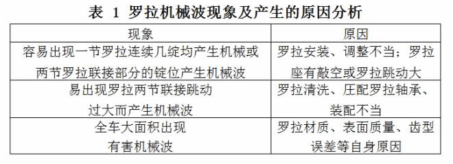 ①罗拉机械波与其安装、调整、清洗、轴承压配不当以及其自身材质、表面质量、齿型误差等有关;