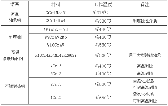 2、高温轴承采用高速钢W18Cr4V、高温轴承钢GCr4Mo4V或不锈耐热钢整体淬火制造。