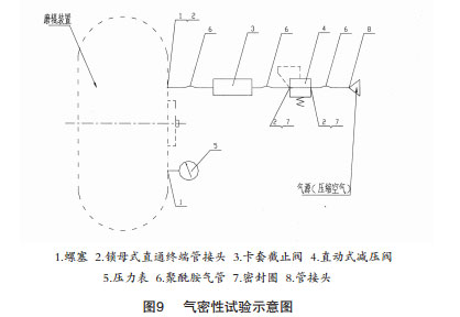 (2)当压力达到0.lMPa后,先关闭序3卡套截止阀,再关闭气源,进行保压,保压时间30min。