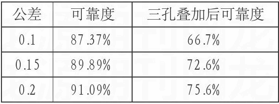 用MATLAB编程计算后,分别取孔公差为0.1mm、0.15mm和0.2mm三种情况,其中0.1mm为原始公差,0.15mm和0.2mm为加大后公差,对三种情况分别代入MATLAB程序进行计算,结果见表1。
