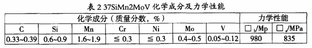 传动轴的材质为37SiMn2MoV合金结构钢,主要用于制作大截面承受重载荷的重要零件。化学成分及主要力学性能如表2。