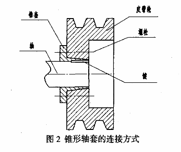 当锥套将皮带轮与轴连接在一起时,就形成了一个过盈配合的连接体。锥套内孔与轴有键连接,是通过键来传递转矩和力的。锥套与皮带轮间虽然没有键连接,但是接合面存在正压力,产生的摩擦力就可以传递转矩和力了。