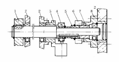 1.皮带轮;2.床柱立墙;3.柱塞泵;4.偏心套;5、7.花键套;6.制动电磁离合器;8.固定花键法兰盘