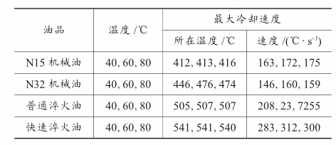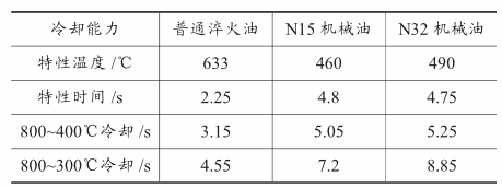 表3 普通淬火油与机械油冷却能力及冷却特性