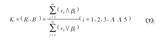 为模糊数学中的取“大”计算。同理求出其余各项的贴近度如表1。
