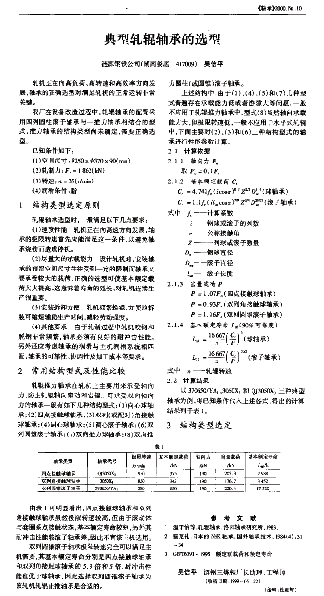 典型轧辊轴承的选型