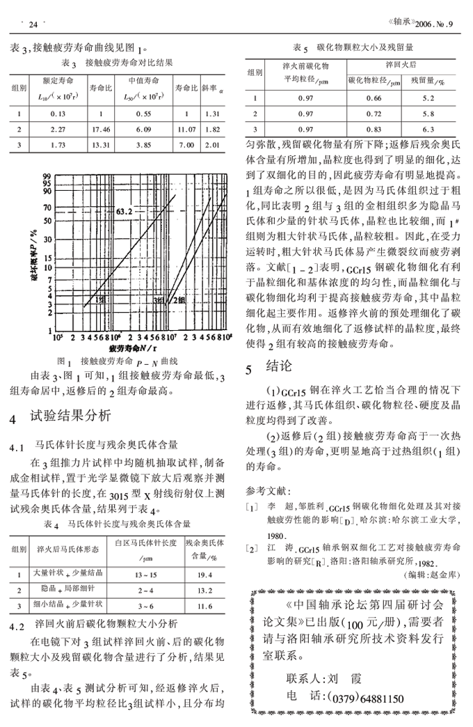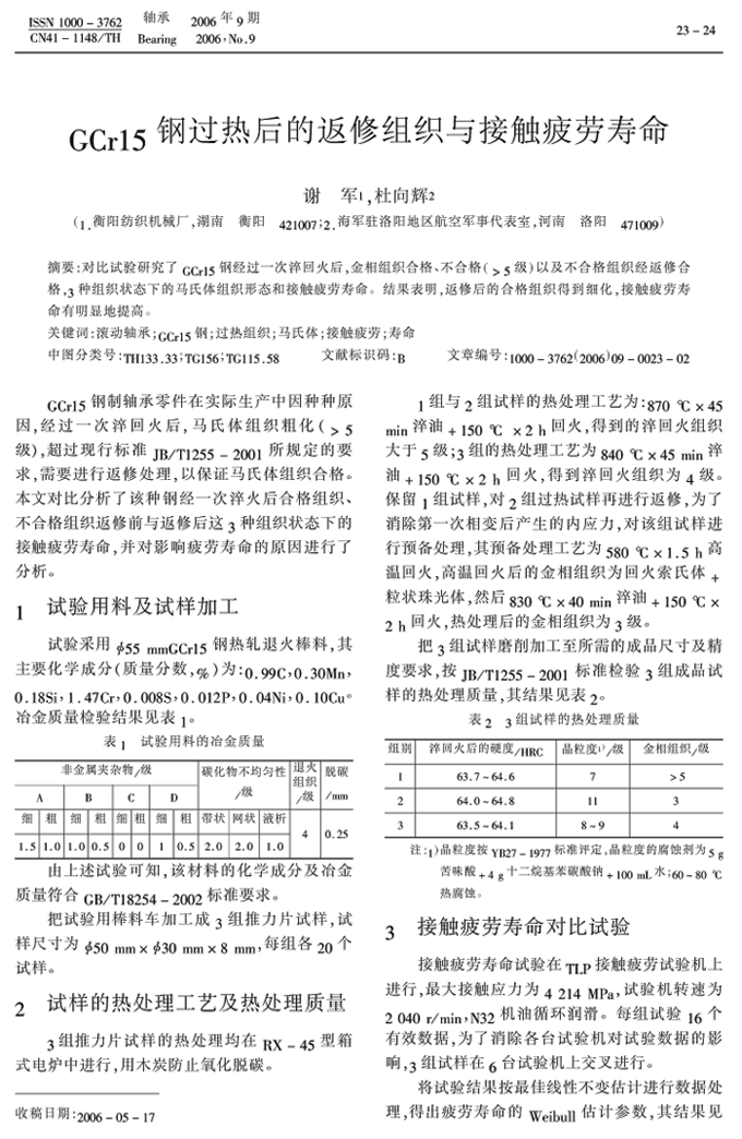 GCr15钢过热后的返修组织与接触疲劳寿命