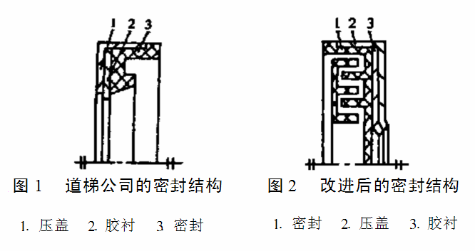 大同煤校机厂改进后的密封形式为组合式密封,如图2所示,它是由迷宫密封、压盖和胶衬组成,既能防水又能防尘,装配也容易。