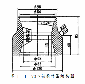 1-7013轴承外圈结构如图1所示。此产品为用户提供,对其成品进行解体分析得:材料为55