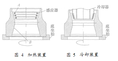 加热时选用螺旋仿型感应器(如图4所示)。冷却方法为喷射冷却,冷却时间由继电器控制,喷射压力为2.0MPa,淬火液温度为15~30℃,冷却液为自来水。喷液淬冷装置如图5所示。