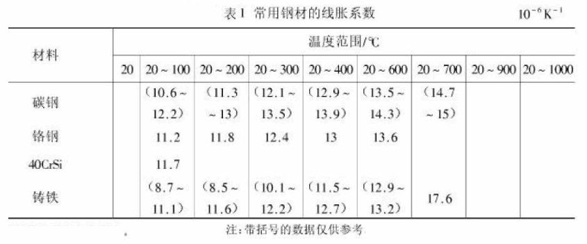高铬钢在温度不高于600℃时,其线性膨胀可参照下表。