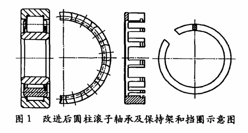 该结构取消了保持架盖,在保持架座的内径上加工一个环形槽,装入弹簧挡圈,由弹簧挡圈代替保持架盖起到约束滚子的作用。这样既节约了材料,又减少了铆钉,去掉了铆钉孔加工工序,还使滚子的应用做到了通用化。实践证明,改进结构效果很好。