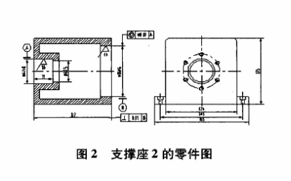 图2为支撑座2的零件图。图中对孔D47H6和D95H6的同心度,孔D95H6和137右端面的垂直度作了比较严格的要求,要求均在0.02mm以内。这在加工过程中极难保证,易出现超差情况。在安装过程中此零件经检验,两孔同心度为0.10mm,垂直度为0.08mm,严重超差,按要求要报废处理。可是此件号为铸件,如果报废处理,成本高,加工周期长,根本不可能在规定工期内完工。