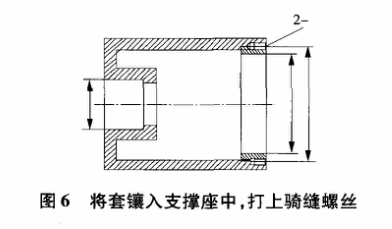 4) 将套镶入支撑座D110H7中,打上骑缝螺丝加以紧固。如图6所示。