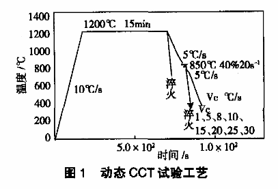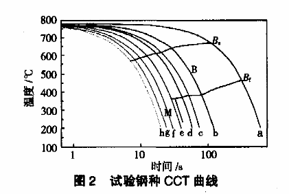 图2是根据上述试验条件和步骤绘制的试验钢的动态CCT曲线。