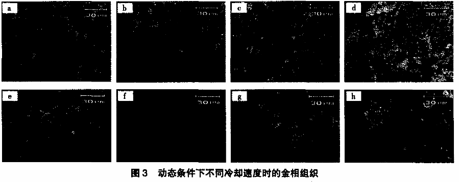 将动态条件下的试样处理后在OLYMPUS-600显微镜下放大500倍进行观察,组织如图3所示。