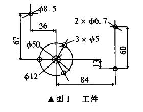 图1为曲轴箱左端面孔的分布情况,表1为当钻削进给量f=0.08mm/r时,各孔径用高速钢钻头钻灰口铸铁(HB190)时的受力情况。