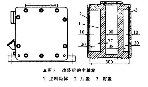 图2、图3是所设计的主轴箱体与标准主轴箱体对比图,差异是一是增大了箱体刚性,二是将后盖连接方式改为底面连接,后盖结构改成与前盖结构相同。