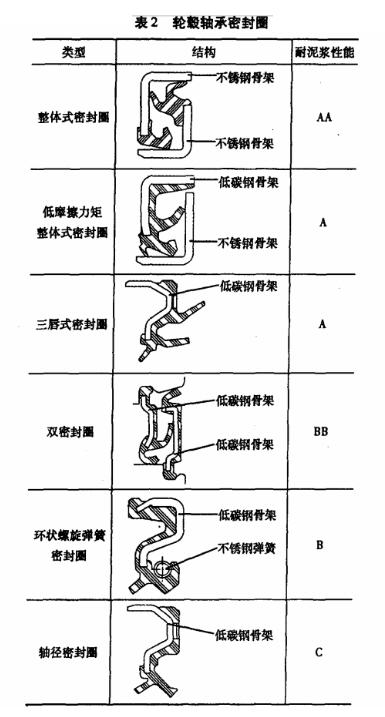 由于非常接近地面和高温的刹车盘等零件,轮毂轴承需要适应各种复杂路况及恶劣环境。因此轴承密封圈必须具备良好的耐热、防泥浆和污水的性能。表2列出了具有不同密封性能的密封圈。