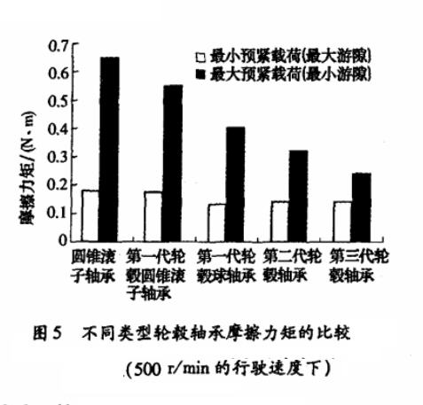 轴承的类型和预紧载荷是影响轴承摩擦力矩的主要因素。图5示出了各种轮毂轴承摩擦力矩渐进减少的状况。