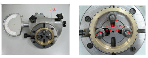 7.转动齿环一圈,指示表上指针的变动量为△x,注意三个测头与油槽接触时的示值不能计算在内。