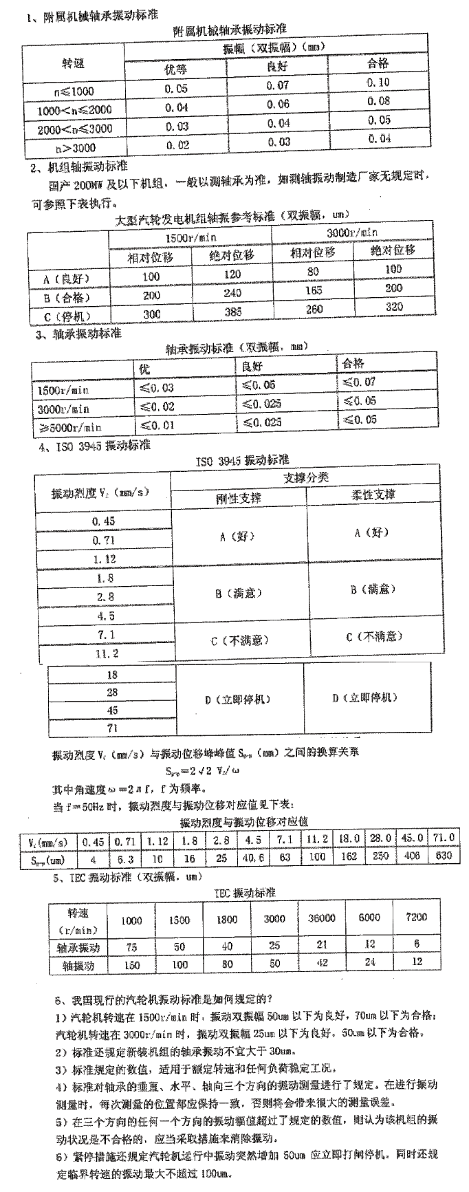 汽轮机轴承振动标准