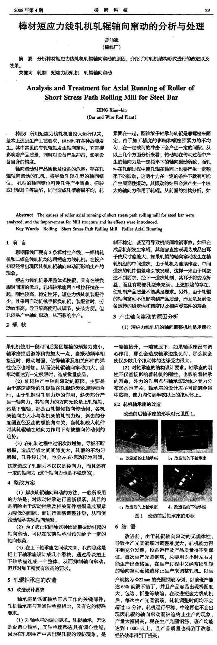棒材短应力线轧机轧辊轴向窜动的分析与处理