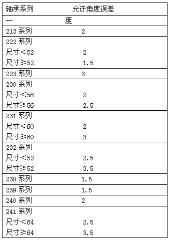 又由于其是滚子轴承,所以能承载的径向负荷能力大,能承受重大荷重及冲击负荷。龙门式起重机的小车机构在吊取重物并在小车轨道上作高速移动时,不可避免会产生频繁振动和冲击载荷。223XX系列轴承在小车车轮装配中的应用正能符合此类工况。值得注意的是,虽然调心滚子轴承允许内圈与外圈之间有一定的角度误差,但必须在其误差值内,否则会直接影响到轴承的性能。在一般工作条件下,调心滚子轴承内外圈之间的允许角度误差值可参见表(1)。能否完全引用这些数值还要取决于轴承配置的设计和所用的密封类型等。另外,在港口大型起重设备中所用到的调心滚子轴承一般都选用冲压钢保持架。