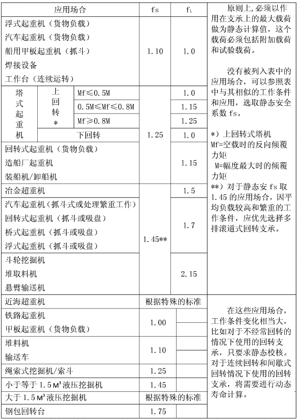 fs-回转支承静态工况下安全系数(见表A1)