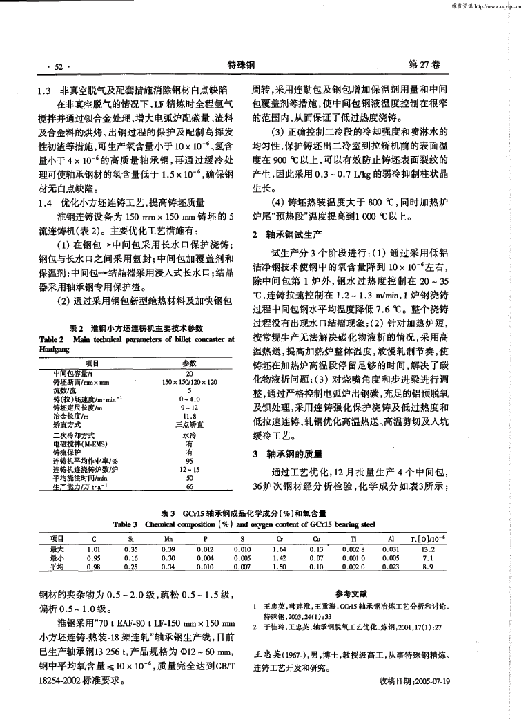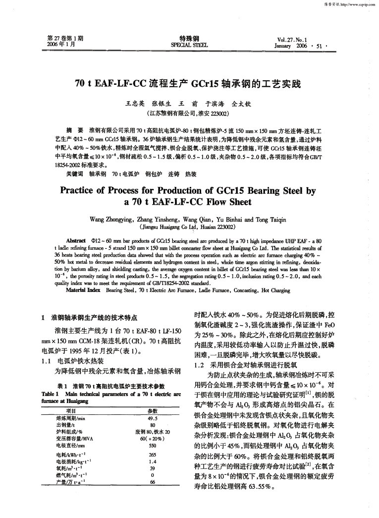 70t EAF-LF-CC流程生产GCr15轴承钢的工艺实践