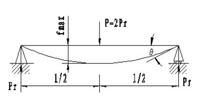 主体结构如图1所示,轴系是整个试验装置的核心部分,试验主轴采用简支梁结构,两套试验轴承对称地布置于主轴两端,在轴承座上装有温度传感器和振动传感器,分别监测轴承外圈的温度与轴系的振动状态。为了提高试验主轴的刚度,须合理设计两轴承之间的跨距l。以试验轴承UCP213为例:其额定动载荷Cr为44kN,根据滚动轴承寿命及可靠性试验规程,试验当量载荷Pr取20kN,轴的弹性模量E为210GPa,由简支梁(如图2)的变形公式及设计原理,可得其主轴的Z大挠度