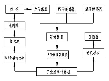 测控系统(如图4)是整台试验机的重要部分,由计算机系统、电控系统、加载控制系统、变频驱动系统、传感器测量系统组成,通过测控软件,利用RS-485通讯模块,可以监测主机转速、电流、电压等参数。利用温度、振动、压力传感器,可以监测轴承温度、振动以及载荷等信号。整个测控系统可以自动控制试验机运转程序,精确依预设试验转速谱和载荷谱进行试验,自动测控并记录试验参数。试验时出现异常情况则自动报警、停机,并记录报警原因、时间等。