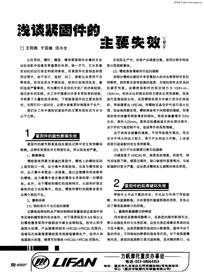 浅谈紧固件的主要失效形式