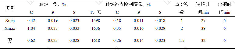 表2 45A钢冶炼工艺参数控制情况