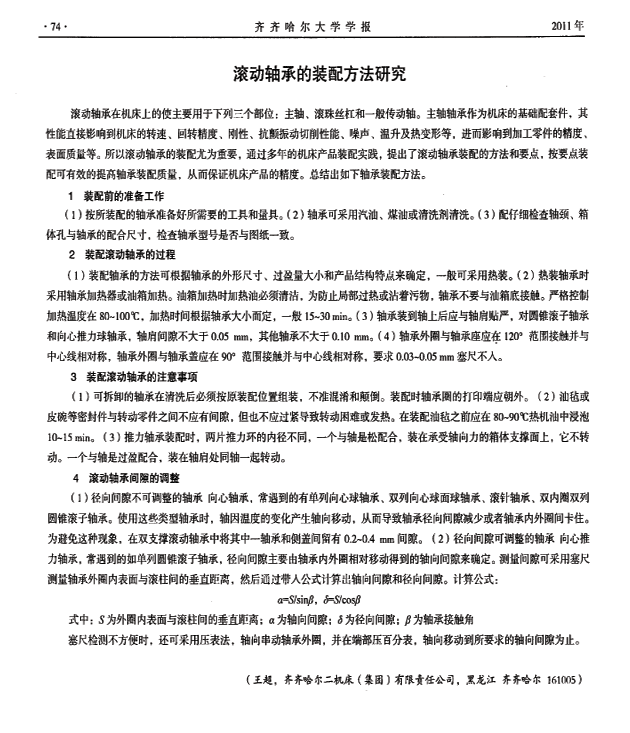 滚动轴承的装配方法研究