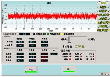 由于,轴承零配件,如钢球,内外圈,保持架的形状误差,表面粗糙度,碰伤等原因,导致轴承运行时都产生噪音,我们可以将噪音分布分解为高中低频值(RMS值)分贝值,由此探索和分析内圈伤、外圈伤、钢球伤、垃圾音和形位误差等等。我们通过提取的特定参数组合来对应特定的轴承质量缺陷。