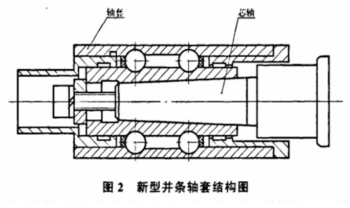 因而并条轴套的检查、加油、揩油的工作量很大,少则10天一次,多则l天一次。针对这些问题,我公司曾努力做过一些工作,如提高轴套内滚针轴承的精度等级,使用进口轴承,加装防油圈,改进芯轴的热处理质量等,这些措施起到过一定作用,但未能根本解决问题。因而在2003年我们想到了重新设计轴套的结构,从根本上解决问题。