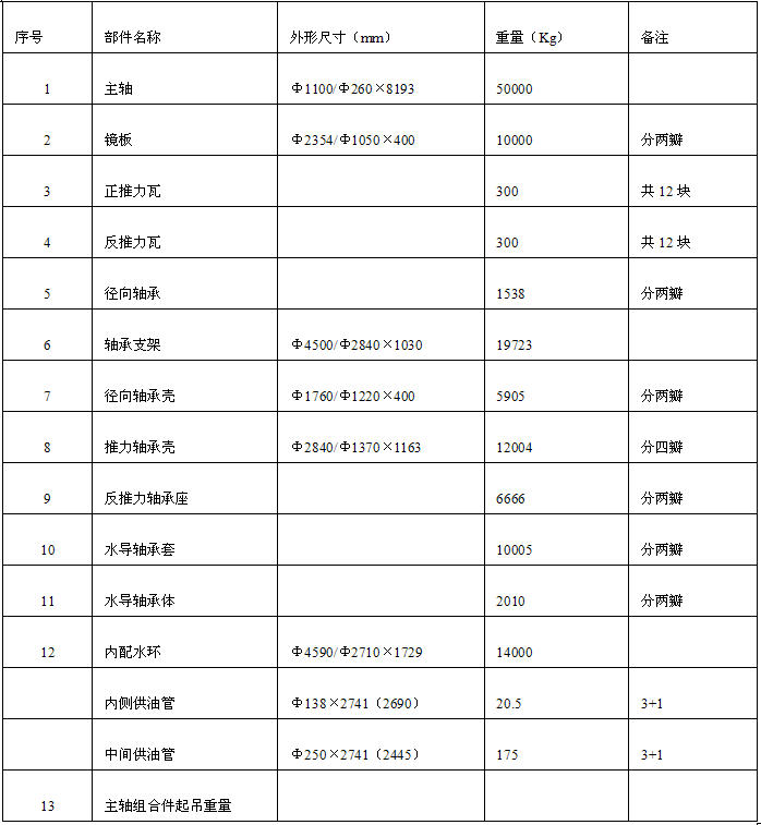 安装内容包括主轴与组合轴承、水导轴承、内配水环组合,主轴组件吊装,轴承安装及轴线调整。