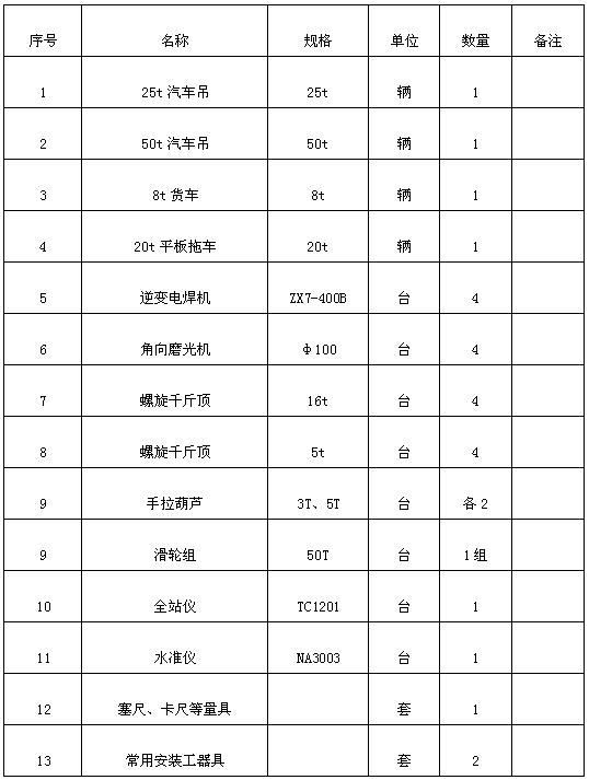 8.5 设备吊装指挥由专业起重工操作,信号必须明确,吊装安全系数必须足够。每次设备吊装时应在离地面500mm范围内起落,以检查起重设备的制动性能。大件吊装时按排人员对桥机进行监护。