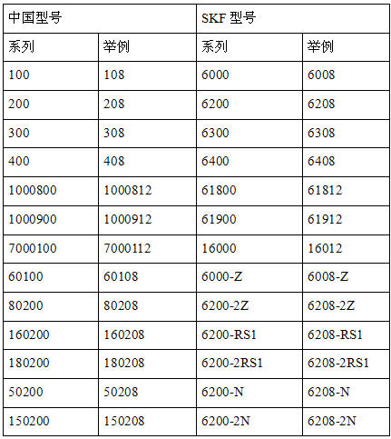 SKF和中国轴承型号简易对照表-深沟球轴承