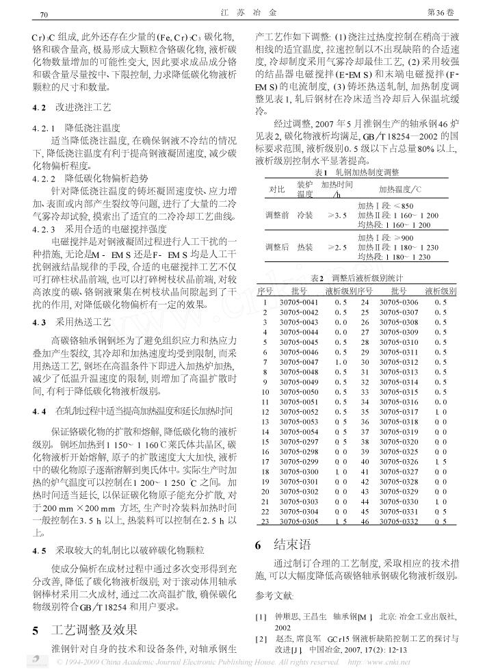 降低轴承钢液析级别的技术措施