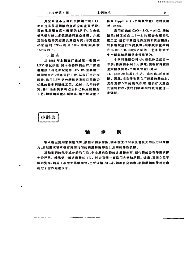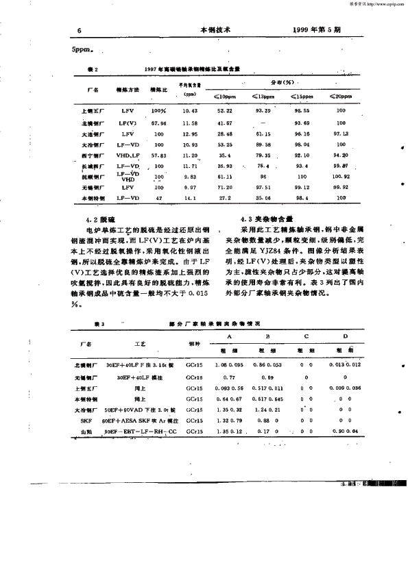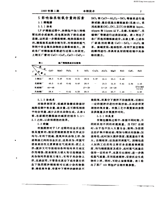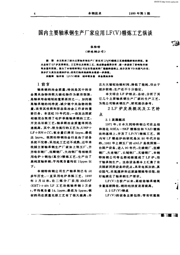 国内主要轴承钢生产厂家应用LF(V)精炼工艺纵谈