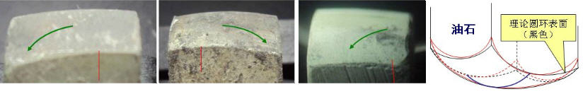 2.由于油石端面摆动半径不一样,各沟道轴平面内的R被破坏,或油石工作面被破坏。