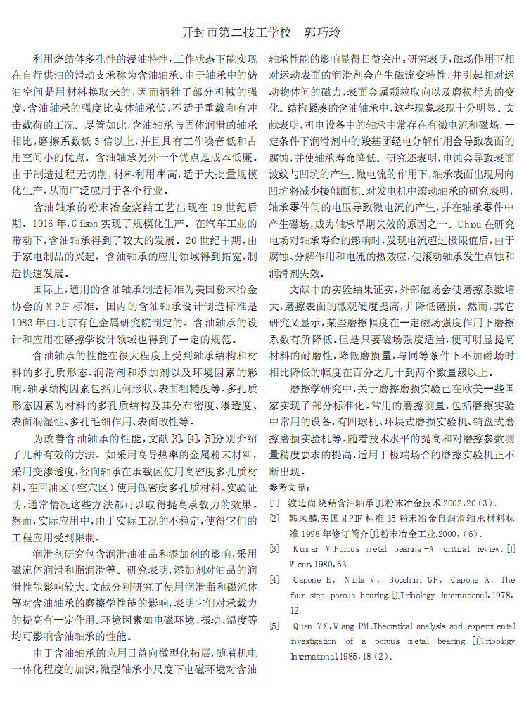含油轴承的工程应用及实验研究概况