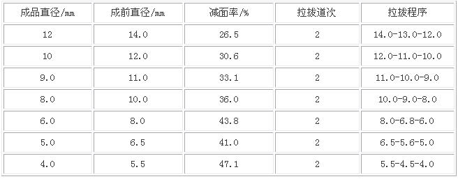 表3 退火交货的轴承钢丝冷拔工艺