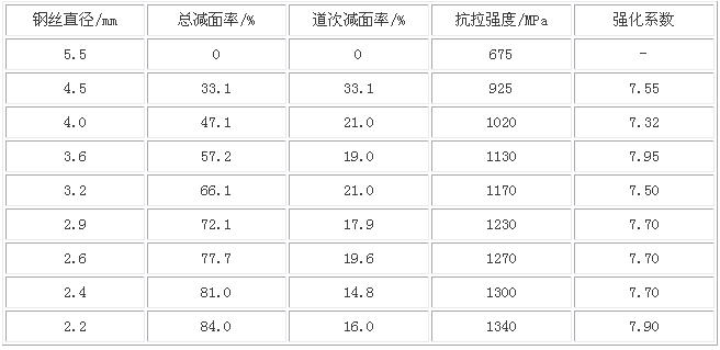 轴承钢丝的冷拔强化系数K约为7.7,减面率小时K偏小点,减面率大时K略为大点。依据轴承钢丝力学性能实测数据的统计分析结果,抗拉强度与硬度可用下列公式换算:σb=3.42HB。
