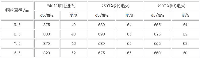 球化退火后钢丝如用机械弯曲法去除氧化皮,650℃出炉即可。如用酸洗法去除氧化皮宜采用600℃淬火工艺,疏松氧化皮,缩短酸洗时间,防止出麻点。