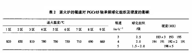 在退火组织和硬度合格的条件下,提高辊速对大生产具有实际意义。例如,当辊速由现行的3 m/h提高到4 m/h时,其生产效率可提高25%,节约能耗,且钢材在高温区的停留时间变短 ,有利于减少钢材表面的脱碳,这一点还有待今后在大生产中进一步检验。