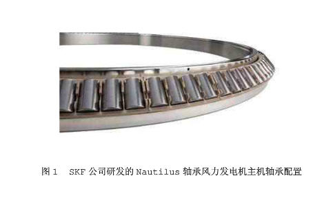 由于风力发电机运行工况复杂,主机维修成本较高,保证其运行的可靠性,即风力发电机的使用寿命,一直都是困扰主机制造商的重要问题。其中轴承的应用对主机效率的影响极为重要。因此,基于风力发电机的复杂性,SKF专门为其并开发了一种特殊的轴承,即“Nautilus”轴承——一种具有特殊的大接触角的双列圆锥滚子轴承(图1)。