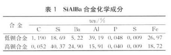 (3)SiAlBa合金按钡含量的高低分为高钡合金和低钡合金2种,其化学成分如表1所示: